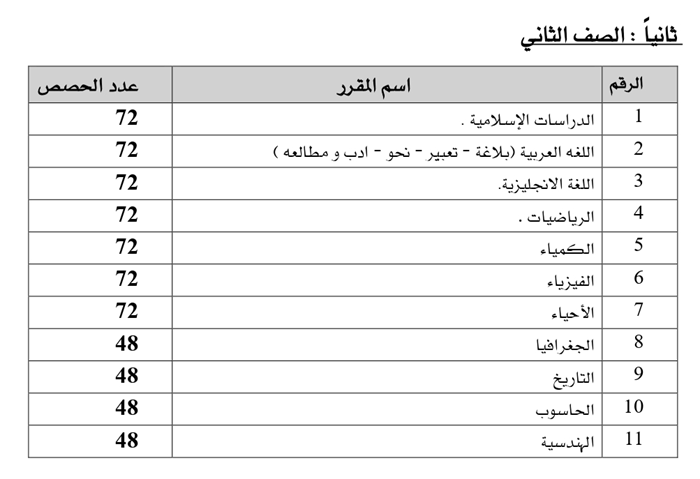 الجَدْولُ الدِّراسِيُّ الشَّخصِيُّ.